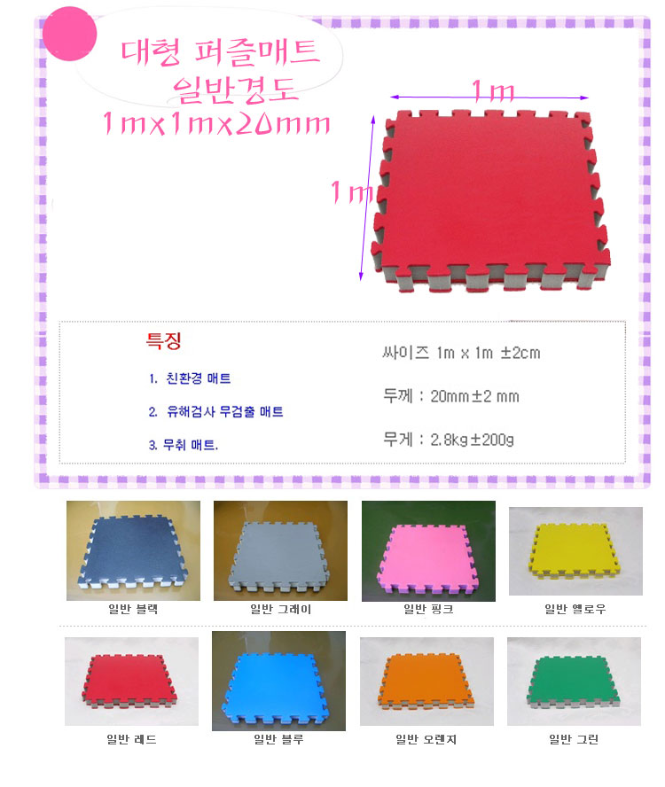 home > 유아체육 > 퍼즐매트 > 퍼즐매트 1mX1mX20mm/체육관매트/스포츠매트